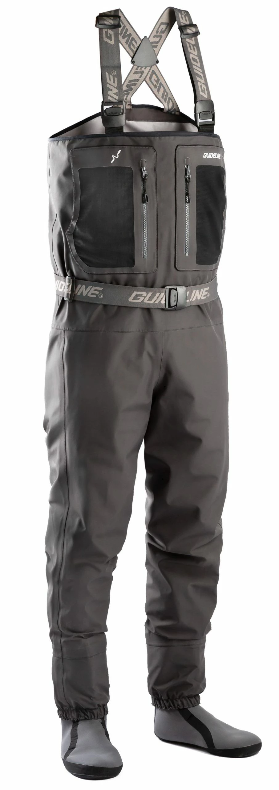 Manufactured from a strong, 4-layer Nylon fabric with a 20 000mm water resistant and 5000g/m2/24hrs moisture transporting membrane. An environmentally friendly PFOA free DWR surface treatment repels both dirt and water from the outshell. Inseams on the waders are eliminated by our Sidewinder™ design, which also gives good articulation and a comfortable fit. Positioned high on the chest, are two large, chest pockets with vertical zippers and mesh fronts. Behind you find fleece lined roomy hand warmer pockets for those chille days.