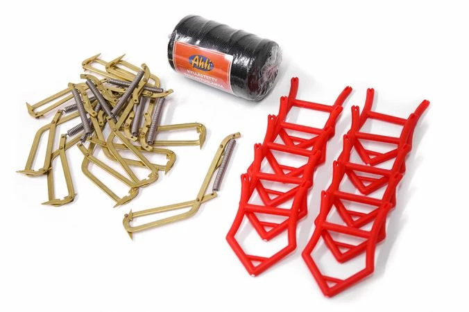 Iskukoukkusetti sisältää 10 kpl Kisa iskukoukkuja, 10 kpl Hokki siimaluokkeja ja 120 m kalastajanlankaa.