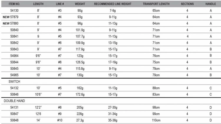The Memento range have relatively deep actions, short stroke lengths and infinitely smooth bending curves. The two double hand rods are slightly faster.