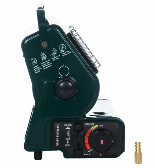 UUSI 2020 MALLI: Sherpa King kannettavassa kaasulämmittimessä on myös erillinen liitinkytkentä ulkoisen isomman kaasupullon kytkentään väliletkun avulla. Isomman kaasupullon paine laskee kaasun ulos lämmittimelle kylmälläkin kelillä!