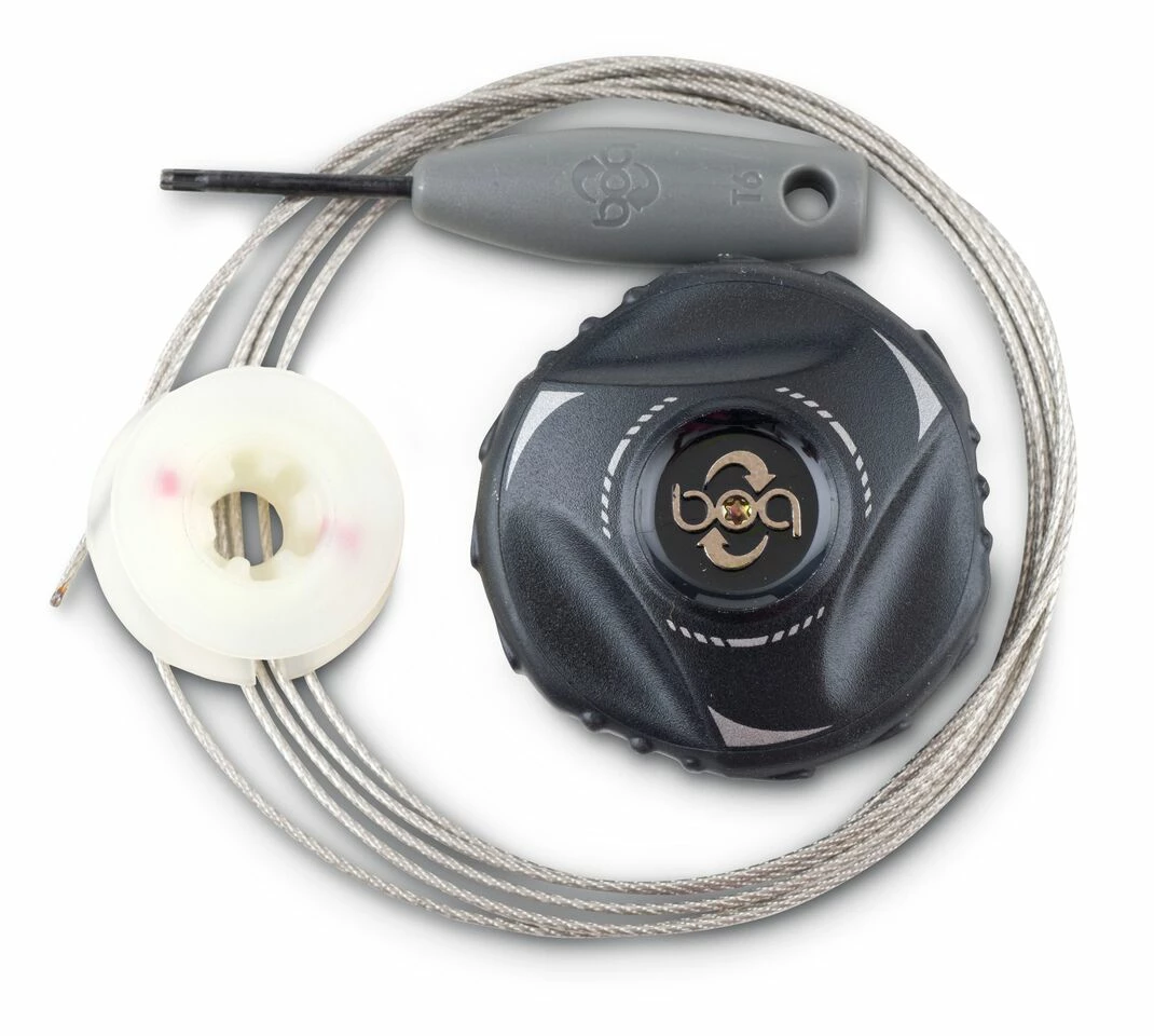 Simms Rivertek -kenkien vaijerit, mekaaniset osat ja kiekko. Vaihtaminen onnistuu vaikka maastossa.