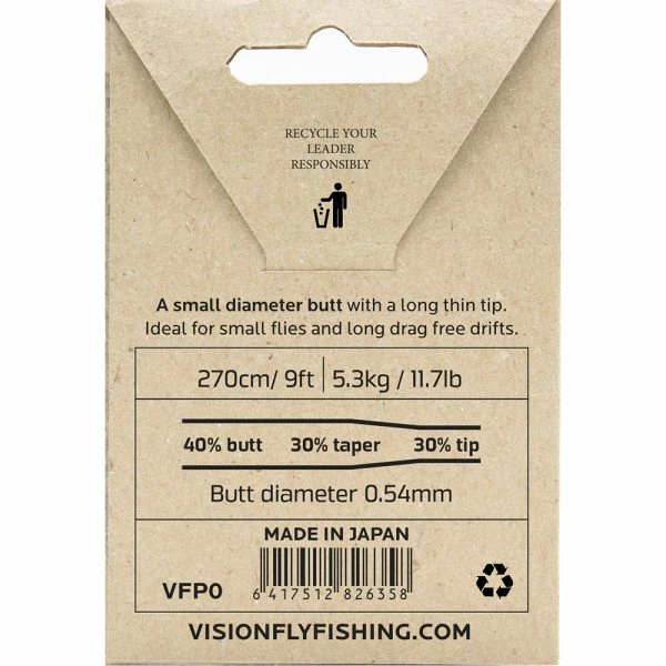 Visionin Fluorocarbon valmis peruke hidasvirtaisiin paikkoihin ja aroille kaloille. Pituus:9’/270cm.