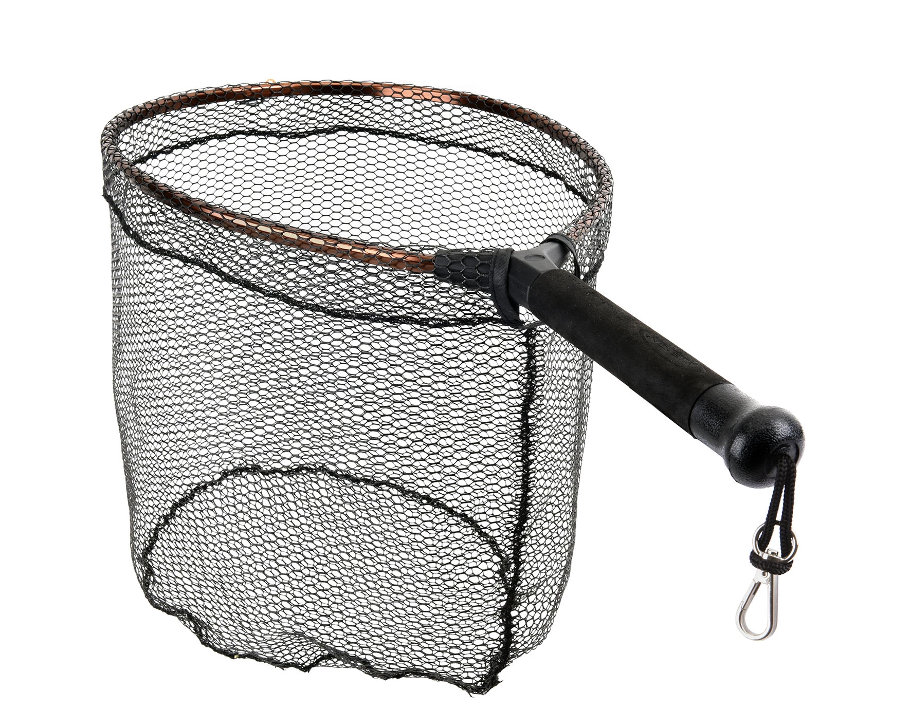 Net with a lightweight aluminum frame, short 18cm handle and 35cm deep rubber net. Perfect size for trout and grayling fishing. The net has a comfortable black EVA handle. Frame size 30cm x 39cm.