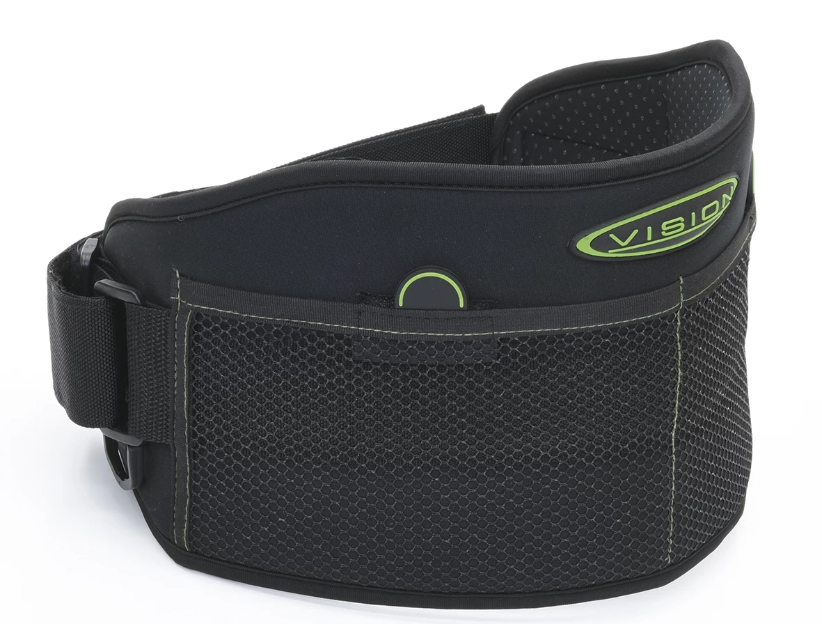 Visionin helposti säädettävä tukivyö, joka on hyvin tuettu. Vyössä kaksi D-rengasta kiinnityksille ja kaksi verkkotaskua. Koko:M-XL.